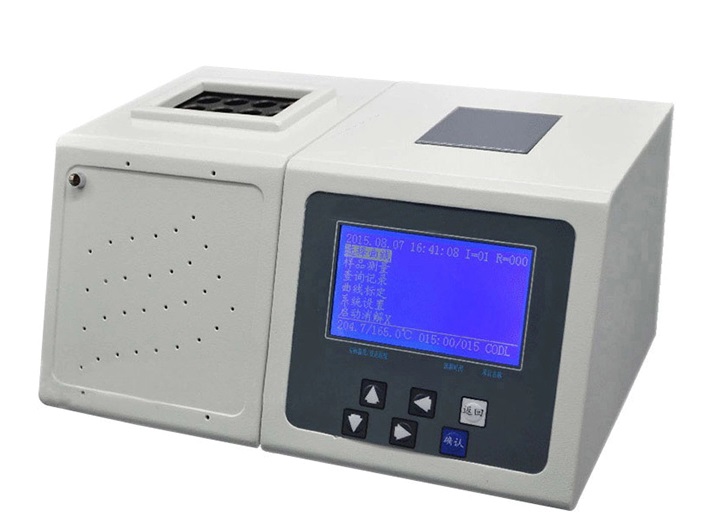 - Nguyên tắc: Mẫu COD được cho vào lọ mẫu đóng kín và phân hủy trong dung dịch axit mạnh với chất oxy hóa độc quyền có chứa kali dicromat, sau đó dưới chất xúc tác tổng hợp đặc biệt, nhiệt độ phân hủy là 165oC, kéo dài trong 15 phút. Crom hóa trị sáu trong Kali dicromat bị khử thành crom hóa trị ba bởi chất hữu cơ trong nước. Lượng crom hóa trị ba được đo tương ứng ở bước sóng 420nm và 610nm, cuối cùng, dựa trên lượng crom hóa trị ba, tính toán mức tiêu thụ nồng độ oxy.