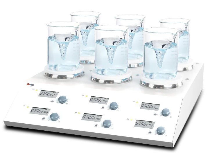 - Máy khuấy từ 6 kênh có khả năng điều khiển độc lập: khởi động/dừng, tốc độ và hiển thị để kiểm soát thí nghiệm đồng thời tốt hơn.