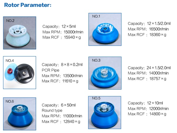 - Rotor góc 6 x 50ml (tốc độ tối đa 11,000 vòng/phút, lực ly tâm 12840xg)