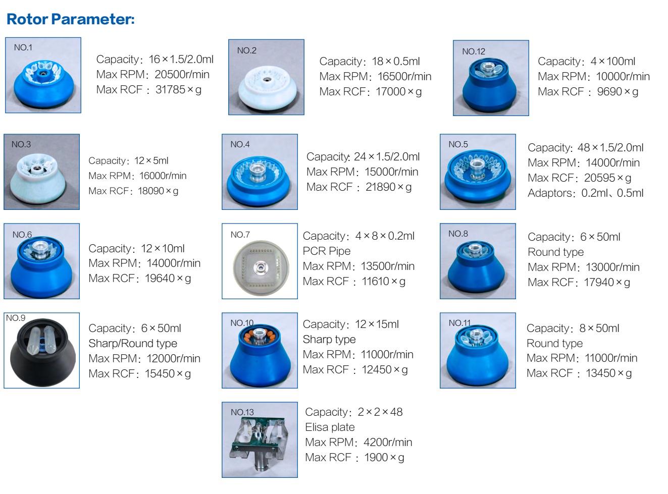 - Tăng / giảm tốc, RPM, Tốc độ và RCF có thể được tùy chỉnh dựa trên yêu cầu.