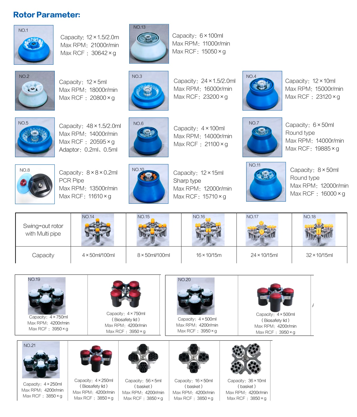 - Tăng / giảm tốc, RPM, Tốc độ và RCF có thể được tùy chỉnh dựa trên yêu cầu.