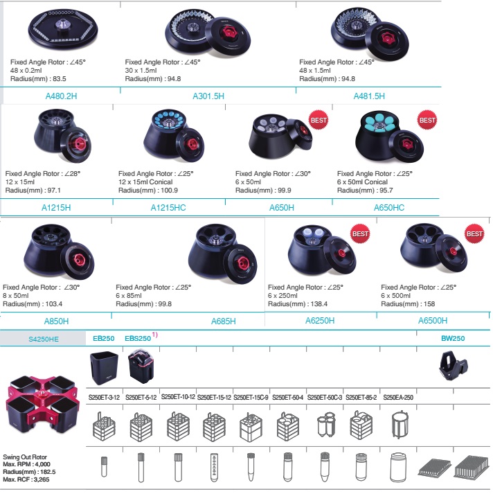 - Công suất ly tâm tối đa: 6 x 500ml (rotor góc) và 4 x 250ml (rotor văng)